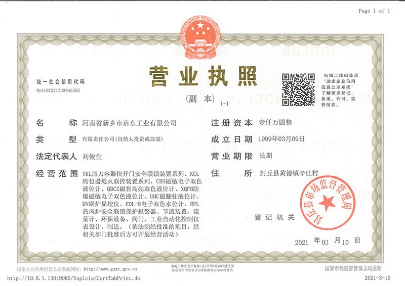 河南省新鄉(xiāng)市啟東工業(yè)有限公司始建于1987年,是專注研發(fā)、生產(chǎn)自動(dòng)化儀器儀表(主要與壓力容器、鍋爐等容器配套使用)的廠家。主要產(chǎn)品有液位計(jì)(磁敏雙色型、磁翻柱型等)系列、烤包器熄火聯(lián)控裝置系列、壓力容器快開門安全聯(lián)鎖保護(hù)裝置系列、鍋爐報(bào)警器系列。二十多年來,公司產(chǎn)品暢銷國內(nèi)并遠(yuǎn)銷俄羅斯、蒙古與東南亞,深得廣大用戶的信賴和好評(píng)。我們多年來致力于自動(dòng)化儀器儀表的研制生產(chǎn),公司現(xiàn)具有完善的生產(chǎn)、試驗(yàn)、檢測(cè)手段和設(shè)備??萍紕?chuàng)新、誠信服務(wù),是我們不變的經(jīng)營理念,我們將以強(qiáng)有力的技術(shù)支持及售后竭誠為客戶提供良好的服務(wù)?! ?012年我公司成功研發(fā)了KCL系列烤包器熄火聯(lián)控裝置,并于2013年2月2日榮獲中華人民共和國國家知識(shí)產(chǎn)權(quán)局辦法的《實(shí)用新型**證書》<**號(hào):2021202257735>該產(chǎn)品廣泛應(yīng)用于唐鋼等大型鋼鐵企業(yè),為烤包器安全作業(yè)提供了有力的保障?! ?002年我公司成功研發(fā)磁敏電子雙色液位計(jì)獨(dú)特的高亮度LED紅綠雙色顯示,獲得了專家的首肯和用戶的一致好評(píng)。在此基礎(chǔ)上我公司研發(fā)人員十年磨一劍,致力于XQFB-1防爆型磁敏雙色液位計(jì)的研發(fā),于2013年12月27日由國家防爆電器產(chǎn)品質(zhì)量監(jiān)督檢驗(yàn)中心檢驗(yàn)合格并頒發(fā)防爆合格證書<編號(hào):cnex19.0883>。該產(chǎn)品性能得到了充分的發(fā)揮,廣泛應(yīng)用于含有Ⅱ類A·B級(jí)T1-T4組可燃?xì)怏w或蒸汽與空氣混合形成的爆炸性混合物的0區(qū)、1區(qū)危險(xiǎn)場(chǎng)所。連接用戶DCS或PLC系統(tǒng)實(shí)現(xiàn)遠(yuǎn)距離集中顯示和控制,從而實(shí)現(xiàn)節(jié)能、數(shù)字化管理。為用戶增加了一定的經(jīng)濟(jì)效益和社會(huì)效益,。2014年公司成功申請(qǐng)了夢(mèng)潤儀表的logo,新的品牌新的形象,夢(mèng)潤儀表是啟東的LOGO, 歡迎新老用戶前來洽談合作?! ∥覀円蝗缂韧刈⒅乜蒲械耐度?,憑借產(chǎn)品的不斷更新、加大科技含量,進(jìn)一步拓展市場(chǎng)。我們相信品質(zhì)成就未來,以過硬質(zhì)量、優(yōu)惠價(jià)格、完善的售后服務(wù)熱忱歡迎廣大客戶來我司視察指導(dǎo)、洽談業(yè)務(wù);精誠合作,共創(chuàng)輝煌!